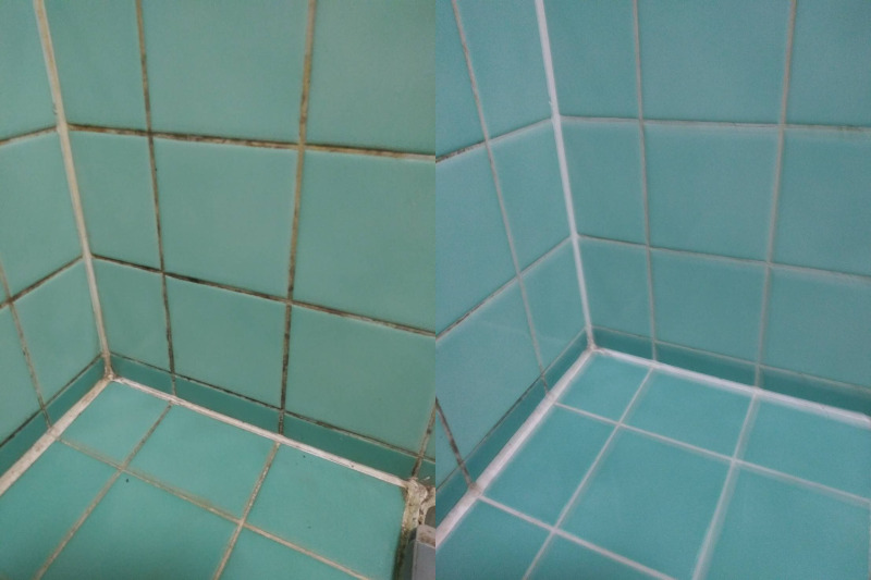 その結果、プッシュして10分ほど放置するだけでタイルの隙間のカビがとても綺麗になりました。