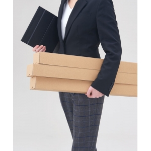 段ボールの柱にフィルムがくるくると巻き付けられているコンパクトな設計なので、持ち運びがしやすく保管時にスペースを取りません。