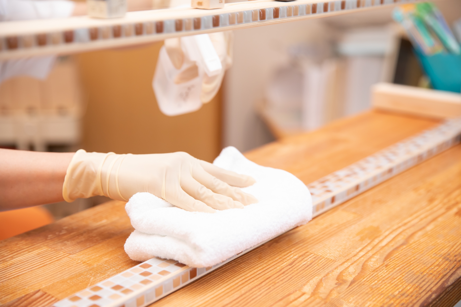 消毒液や水の量が多いと水跡になってしまうため、必要であれば乾拭きもしてあげると見栄えもよく清潔に使えます。