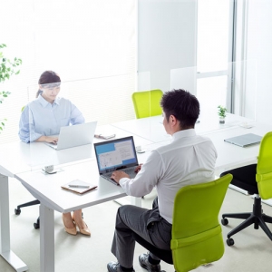 飛沫防止パーテーションには、咳やくしゃみによる唾液などの飛散を物理的に防ぐ効果が期待でき、人と直接対面するリスクを軽減できるのが大きなメリット。