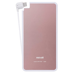 機内持ち込み可能なモバイルバッテリー9.モバイル充電バッテリー 《軽薄》 ケーブル一体型 Type-Cコネクタ 3000mAh 充電用ケーブル付 ピンク