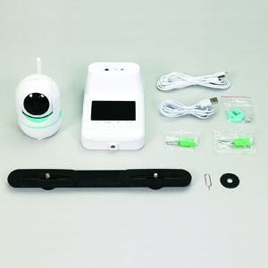 ・本体×1、USBケーブル×1、ネジ&アンカープラグ×2本組、台座板×1、ボルト×1、ピン×1
