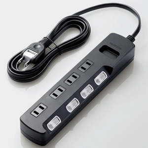 雷ガード機能付きの4個口電源タップです。電源ライン間、電源とアース間両方に耐サージ機能を搭載し、雷サージによる機器の損傷から守ります。